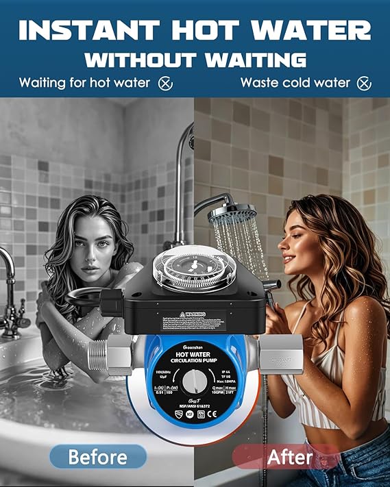 - Get Instant hot water without waiting: Our specially designed hot water recirculating system supplies instant hot water for every area of your home. Hot water can be reached in the bathroom or faucet in just a few seconds, without wasting more waiting time.